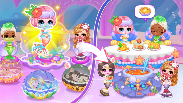 3、化装你的人鱼公主,装扮成不同的风格,进入专属于你的城堡中,享受欢乐的玩耍时光,打造新的天堂。