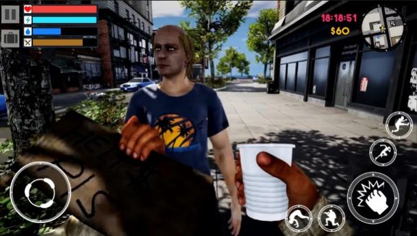 1、玩家需要靠乞讨和偷窃来维持生活,同时还需要注意避免危险和警察的追捕;