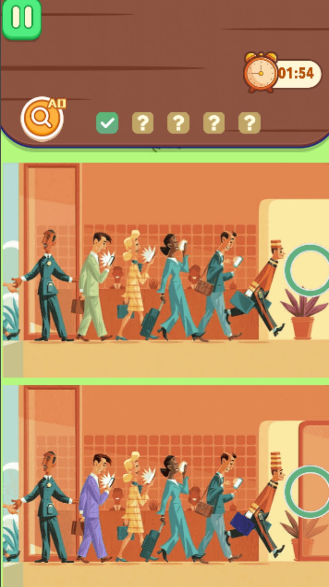 2、点击屏幕标记发现的差异,正确找到所有差异即可过关;