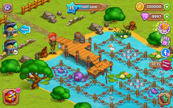 3、在农场种植各种植物。当它们成熟时,你可以收获大量的水并赚取更多的金币。