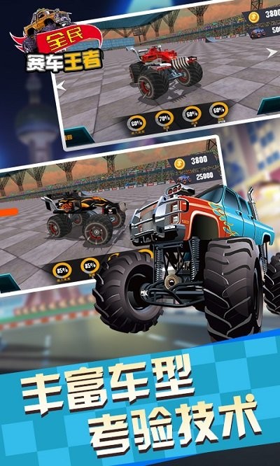 全民赛车王者是一款非常好玩刺激的手机赛车竞速闯关游戏,在这款游戏中玩家们能够体验到最优质的赛车驾驶感受,大脚车的游戏体验,丰富的赛道设计,最趣味的竞速挑战,在这里你能够感受到不一样的赛车竞速快乐,各种的越野赛道挑战等你前来体验。