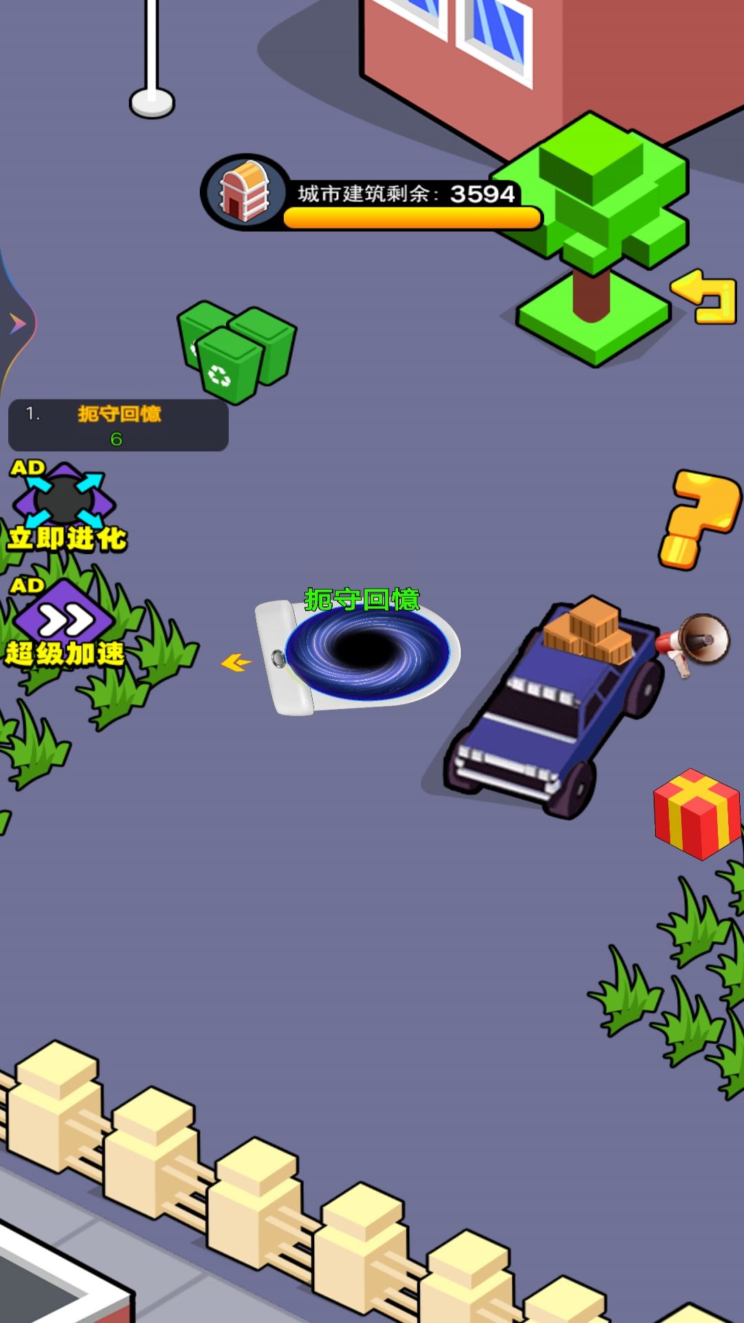 1.只需要通过滑动屏幕来控制黑洞的移动方向,让它移动到需要吞噬的物体附近即可;