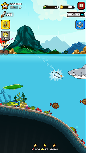1、休闲钓鱼是一款带有卡通图形的休闲闯关游戏。