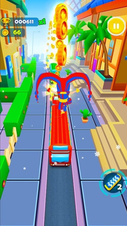 1、收集金币和道具,尽可能地创造更高的得分,挑战自我和其他玩家,享受游戏魅力。