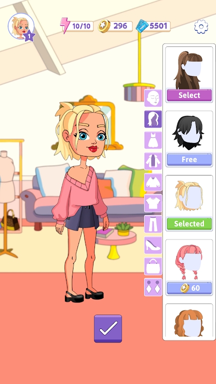 2、你可以为角色设计出独一无二的发型、服装和配饰;