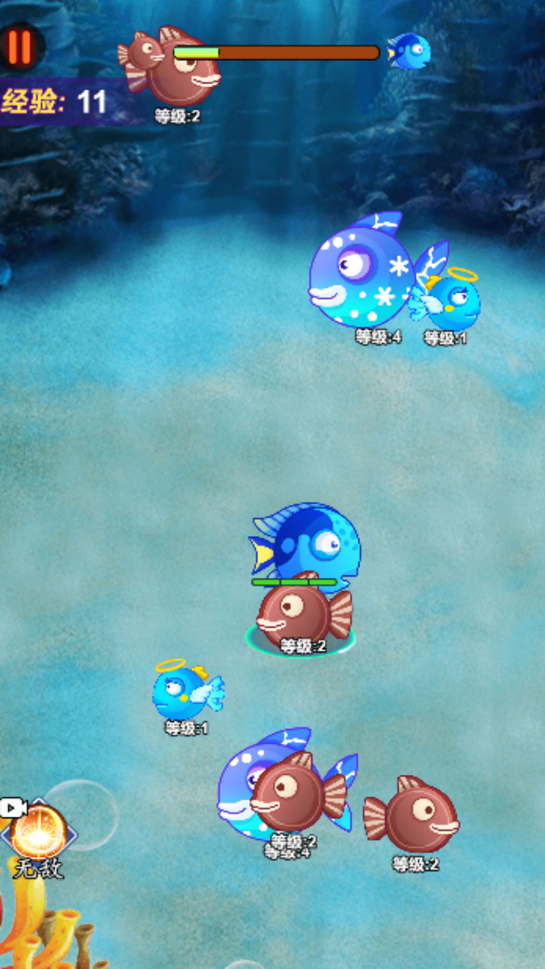 1. 玩家通过控制小鱼来吞噬周围的小鱼,逐渐成为强大的鱼类;