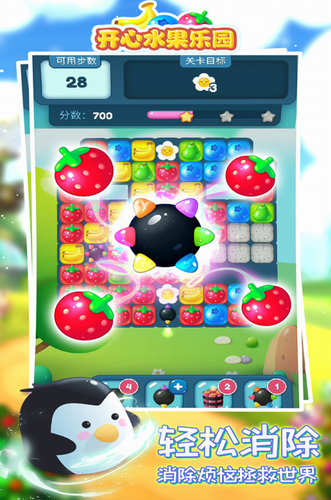 2、在游戏中完成指定目标即可过关,清新的水果风和流畅的游戏感受让您在闲暇之余获得美好心情。