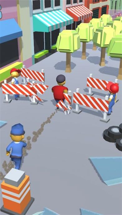 1、控制橡皮人在赛道上奔跑,躲避障碍物,收集散落的砖块;