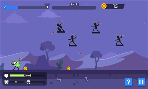 1、游戏的操作简单,只需要控制你的火柴人射手的蓄力以及抛物线的范围。