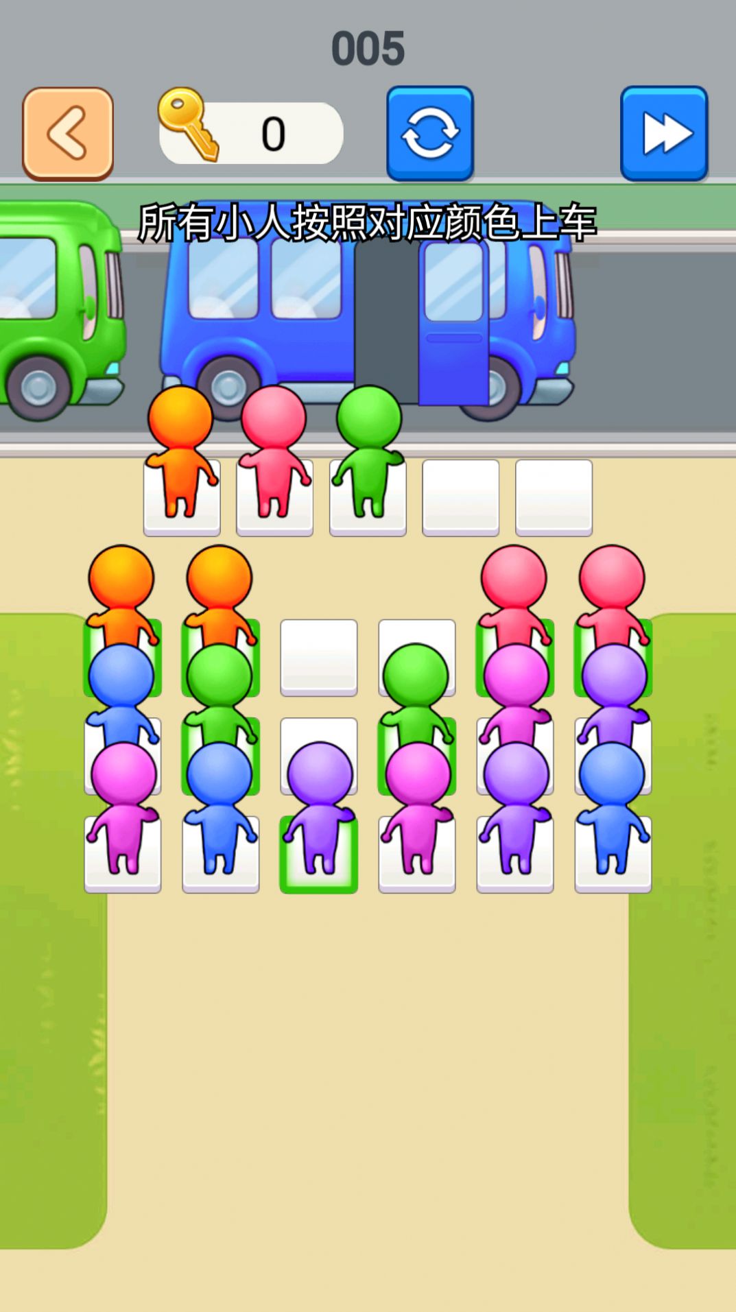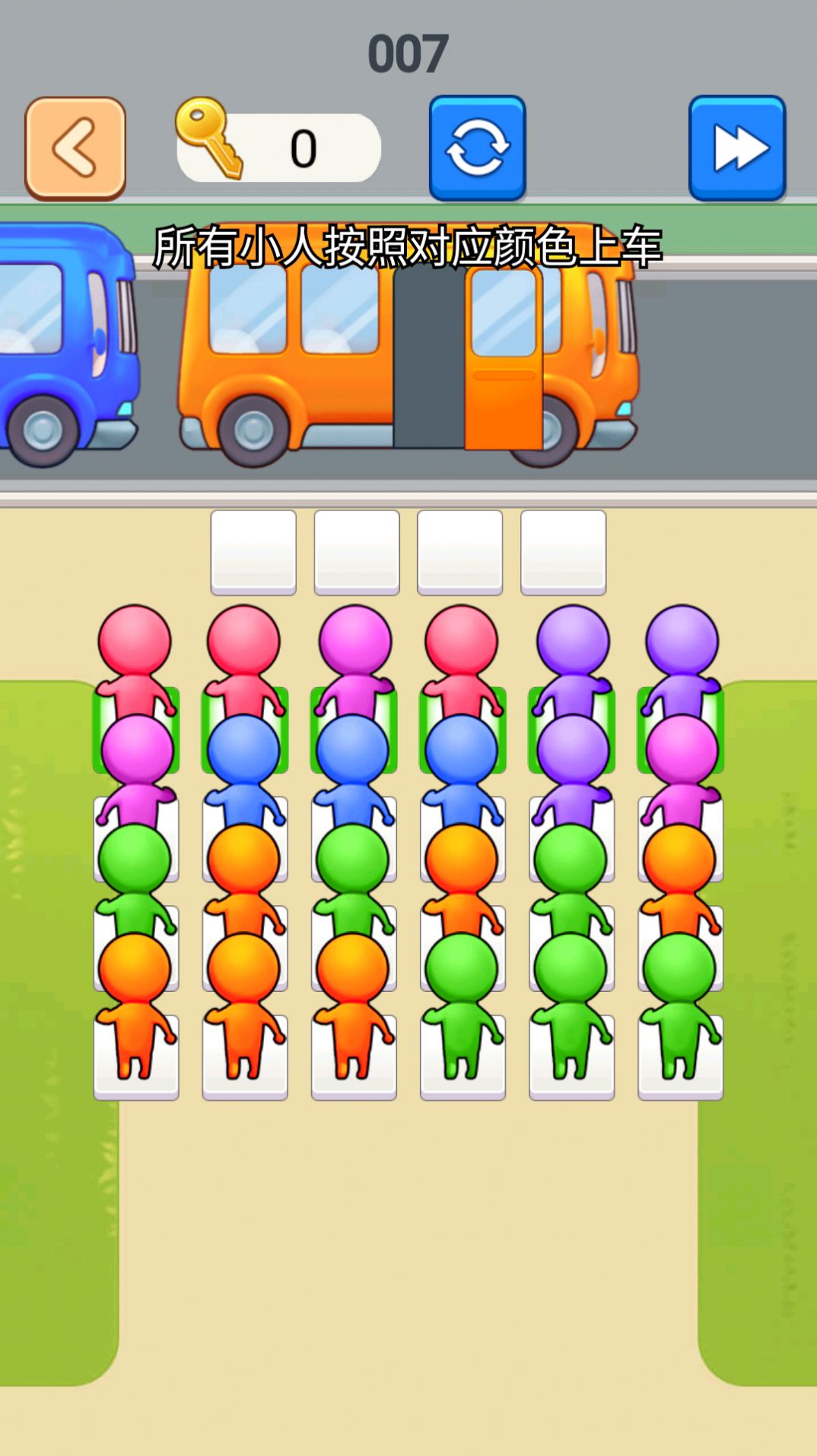 3、游戏的目标是让尽可能多的小人上车,获得更高的分数。