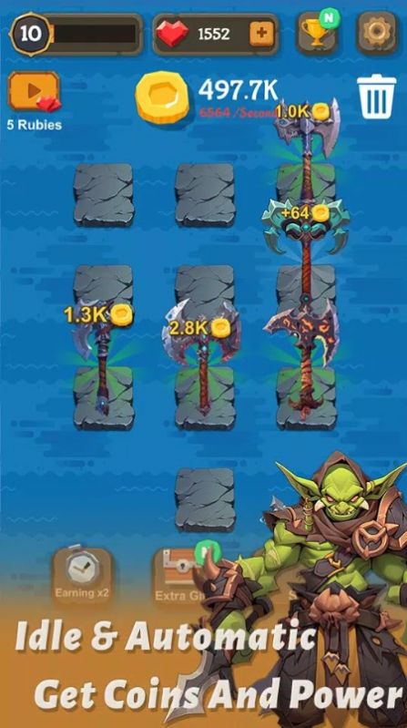 1、只要栏位上有斧子,离线依然在刷金币~你吃饭在刷,上班在刷,睡觉再刷,刷刷刷,爽爽爽!