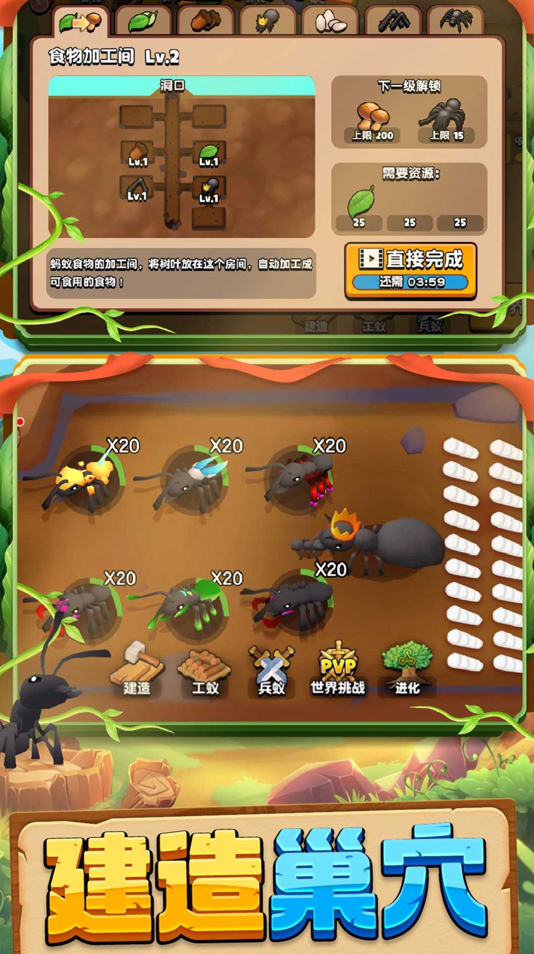 2、每种动物有独特升级路线,提升属性、解锁技能,自由打造个性化的动物英雄;