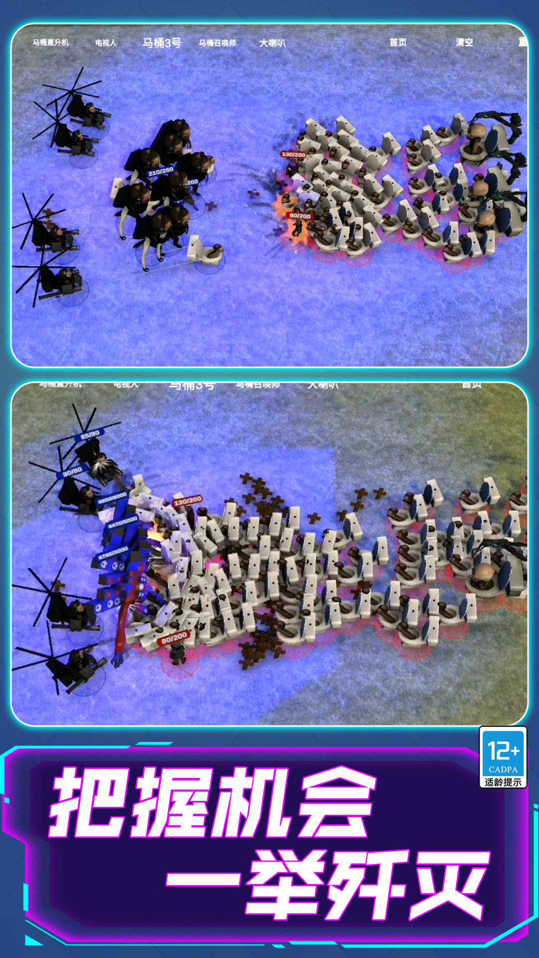 1、整个世界中强者为王,我们将放置士兵和对手进行一场不死不休的战斗。