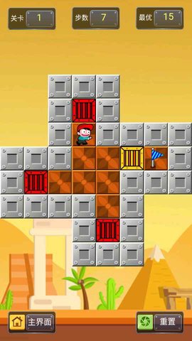 3、通过点击前后按钮,可以控制角色推箱子前进。