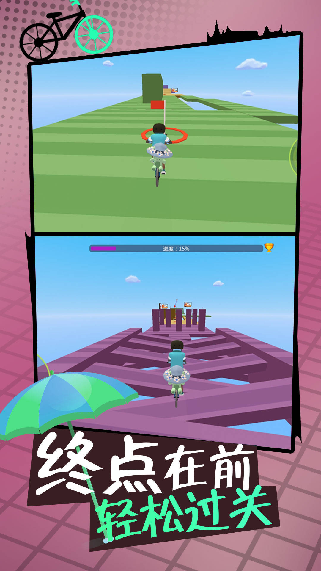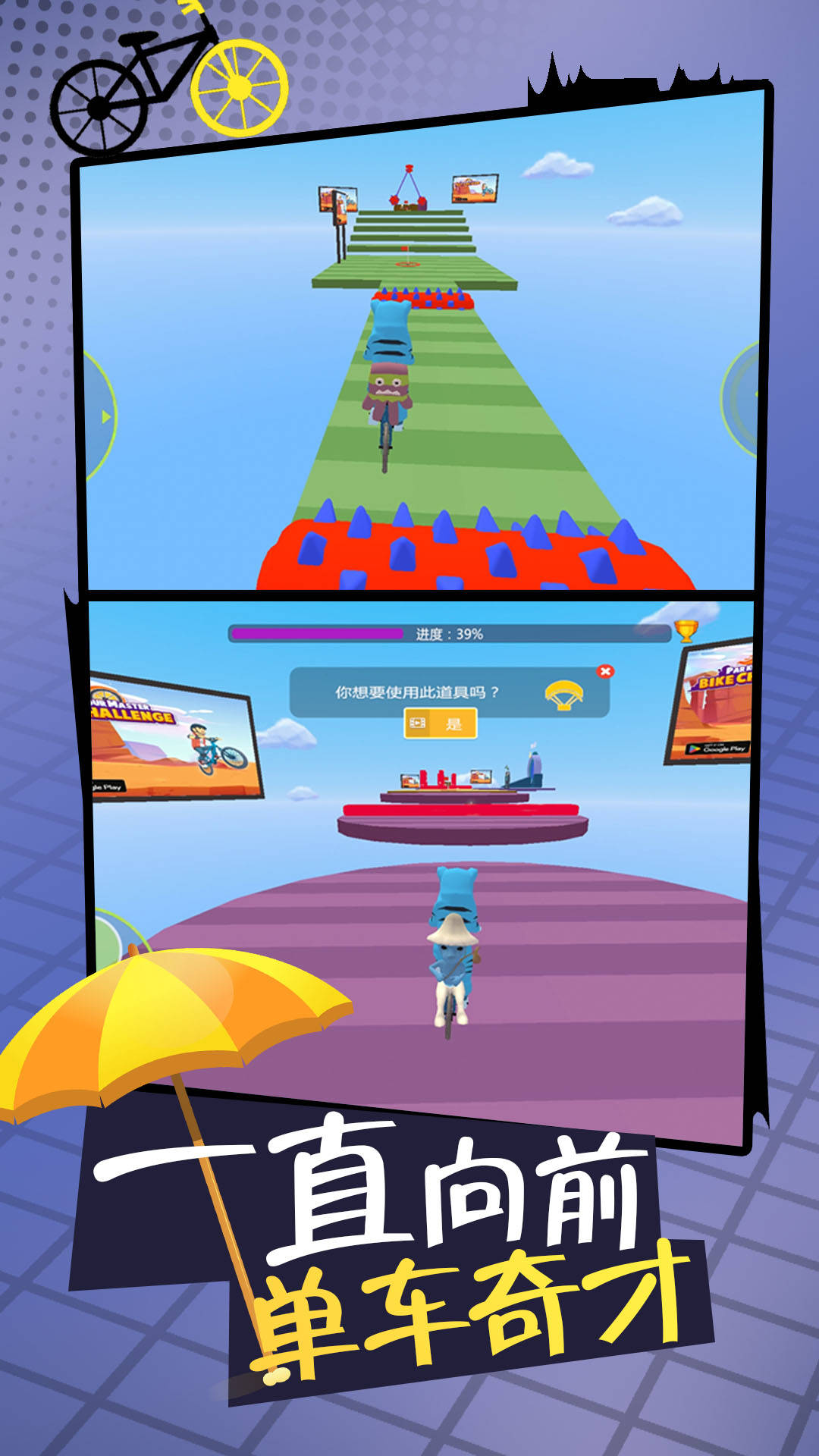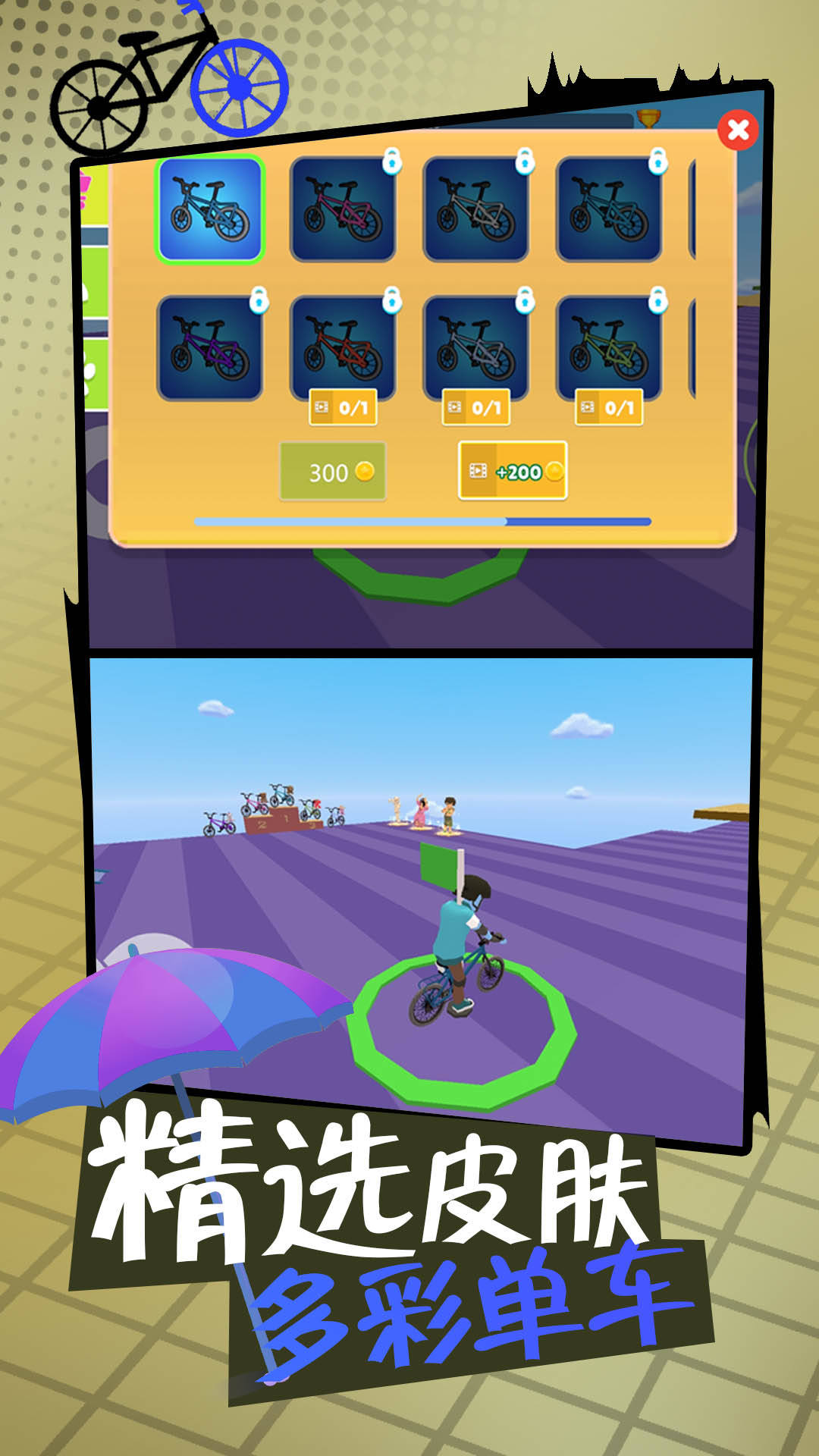 1、玩家需要驾驶自行车子在不同的地形上进行挑战。