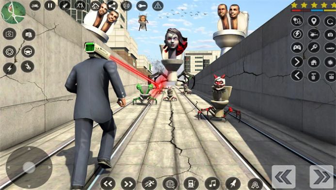 1、玩家将化身监控人超级英雄战士,与马桶人大军展开激烈战斗,尽可能的消灭他们。