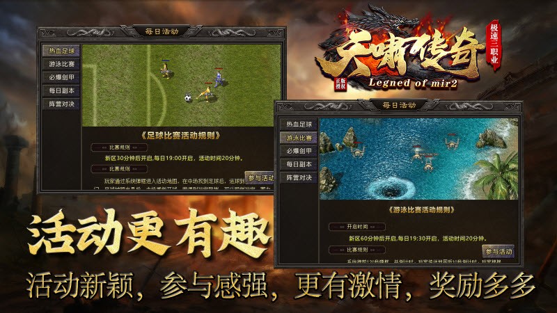 3.包括PVE竞技、PVP竞技、公会战等,给你最为热血的3D传奇冒险。