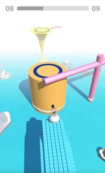 2、在这里你会遇到很多不同的游戏考验,可能是悬崖、栏杆、转盘等,灵活解决这些。