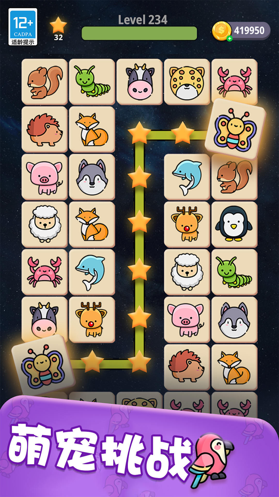 1、使用鼠标拖拽相邻的宠物进行连接,消除全部宠物即为成功;