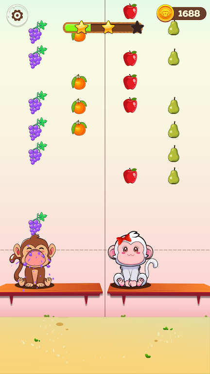 猴子吃彩色水果是一款益智游戏这里的游戏过程非常的治愈,玩家可以感受到非常解压的内容,每个阶段的玩家都是可以轻松上手的,玩家需要在游戏内帮助猴子吃到更多不同的水果,精美的水果看起来非常的治愈,在吃水果的过程中玩家需要注意掉落的炸弹,需要快速的躲避,赶紧来试试吧。