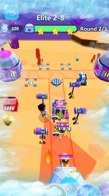 3、在游戏中收集金币和宝石,提高游戏分数并升级自己的阵容。