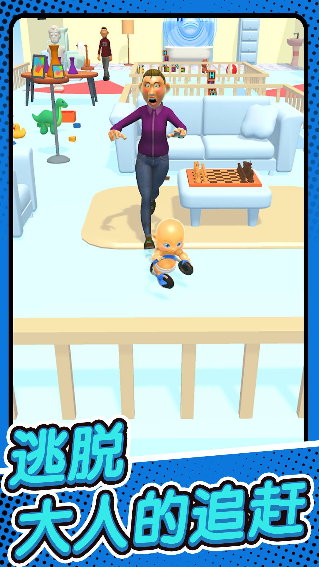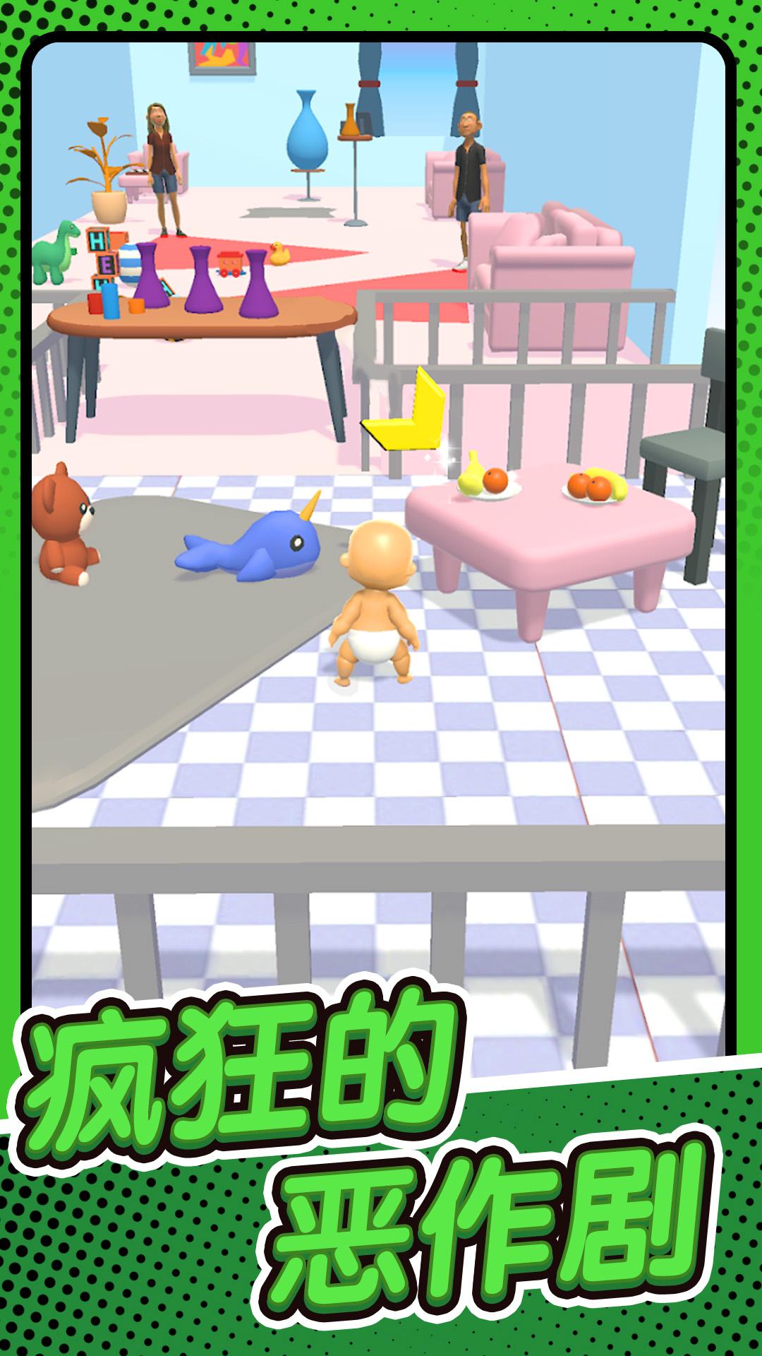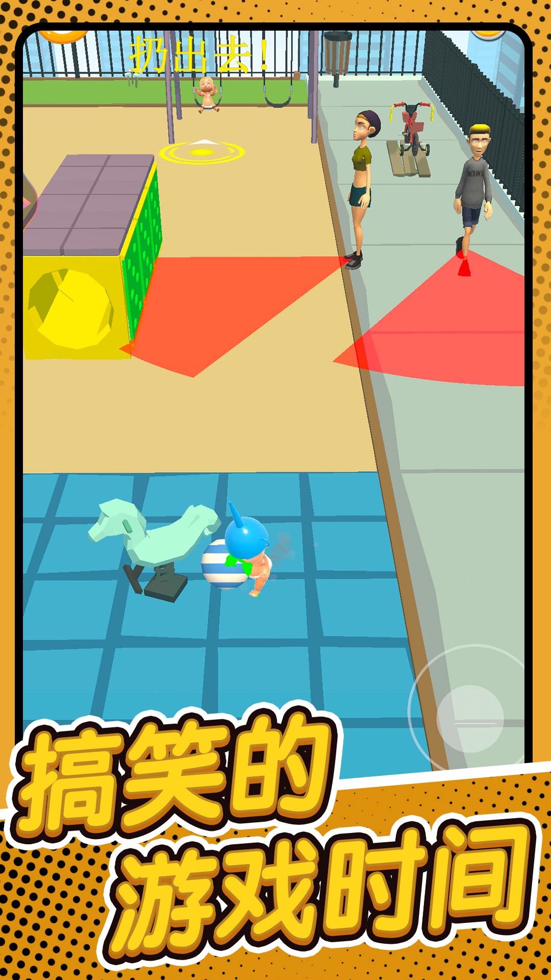 1、淘气宝宝来啦,赶紧用操纵杆移动宝宝,避开父母,以免被抓住;