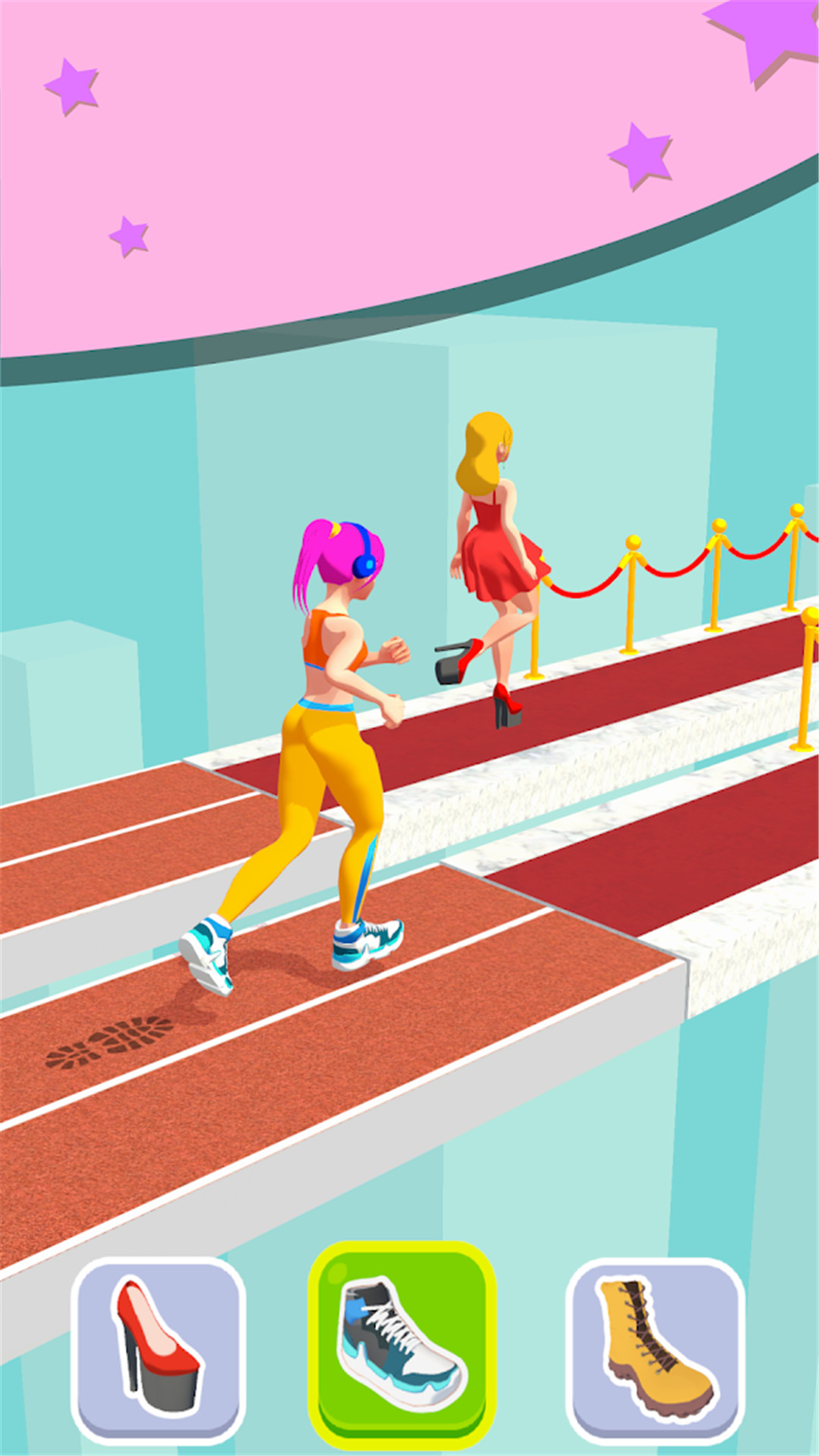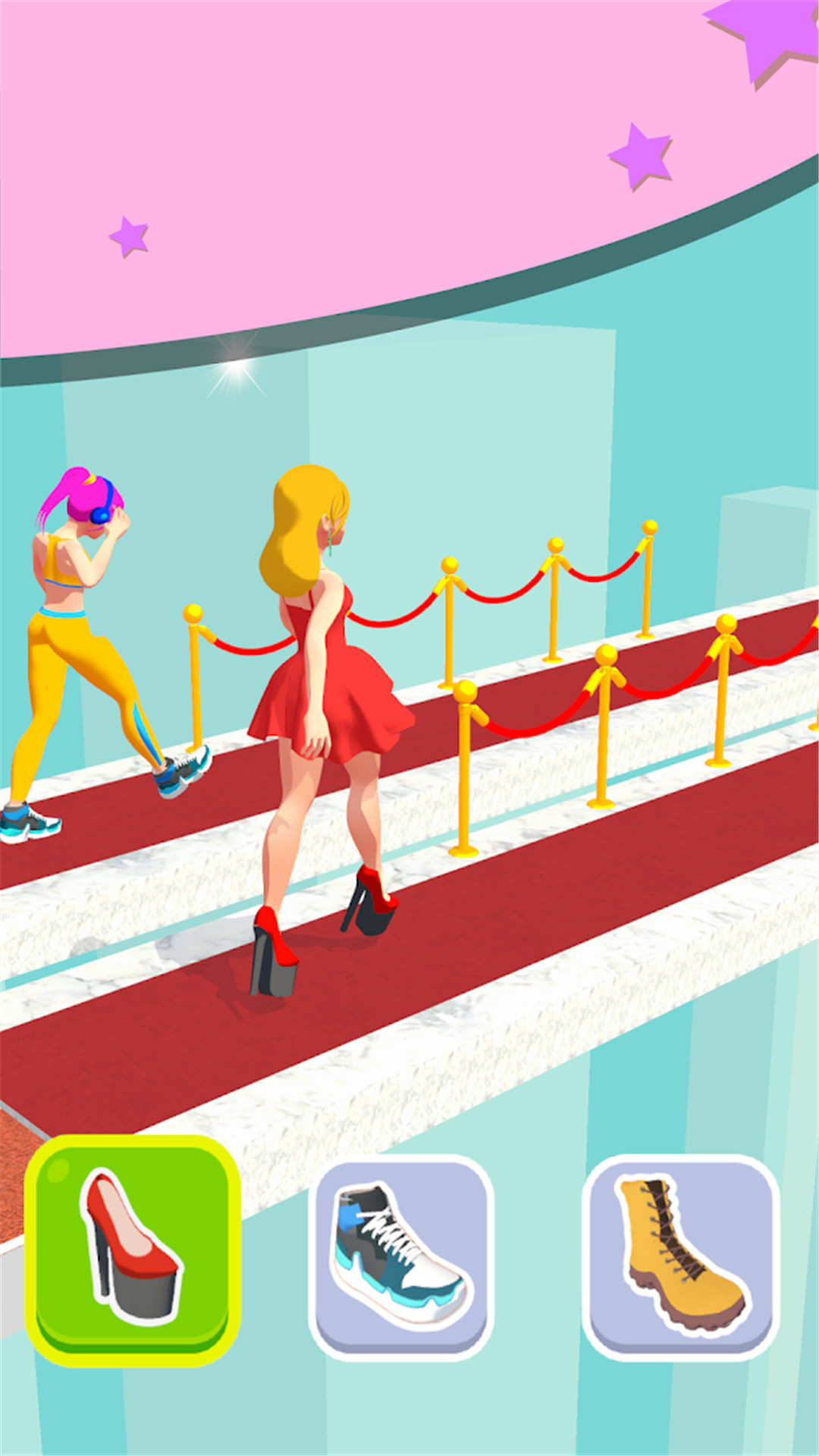2、它操纵女孩们进行跑酷,在红毯上选择合适的衣服和鞋子来完成穿搭工作。