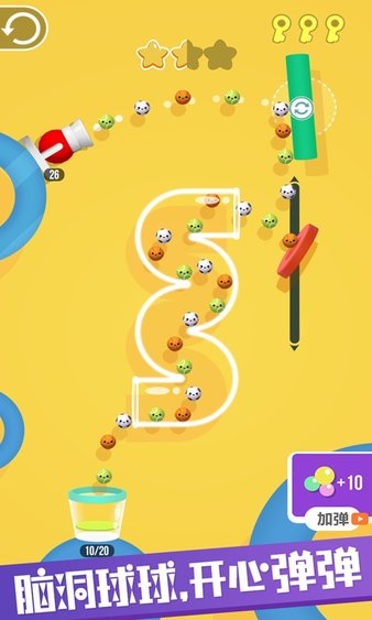 2、让球球顺利进入桶中并达到任务目标,海量关卡等你玩。
