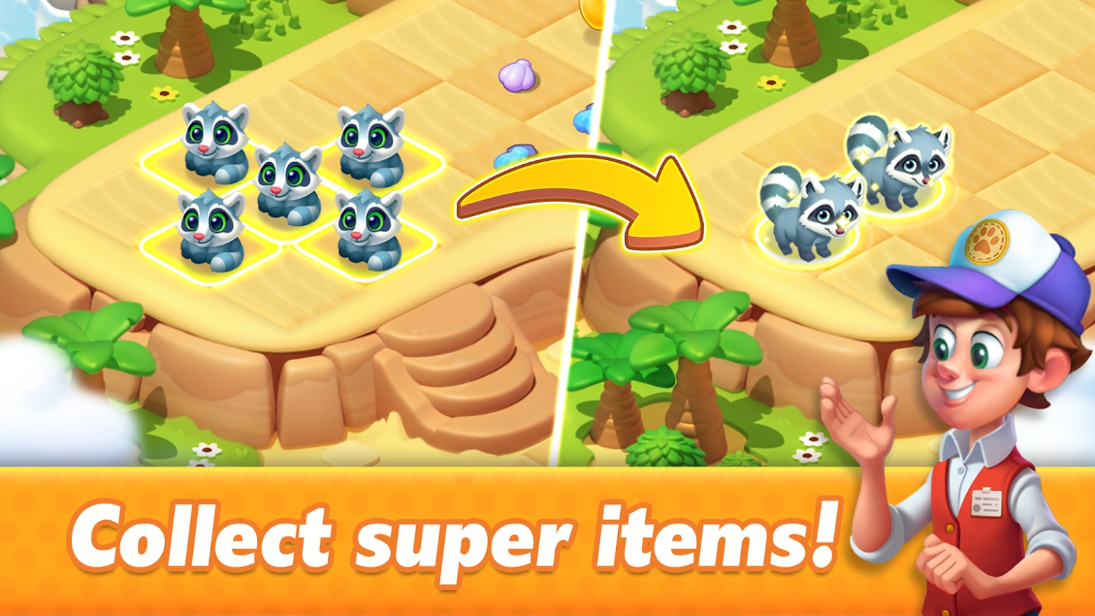 游戏内拥有着许许多多的可爱小动物,玩家们可以通过合成这些动物来使得小岛变得更加充满生机活力。