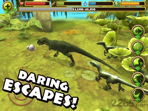 2、游戏中你能够逐渐的长大,通过狩猎获取食物,成为这个恐龙世界的霸主。