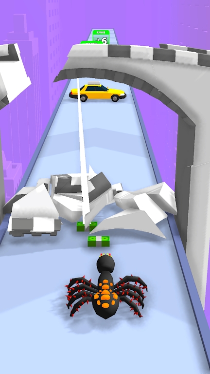 1、通过屏幕滑动控制蜘蛛的移动,躲避障碍和敌人的攻击;