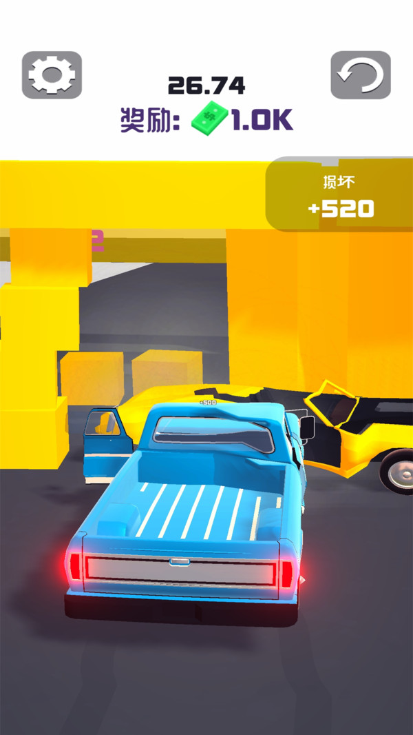 1、模拟驾驶汽车,朝着你的目标去撞击,撞得越粉碎,获得的奖励越多;