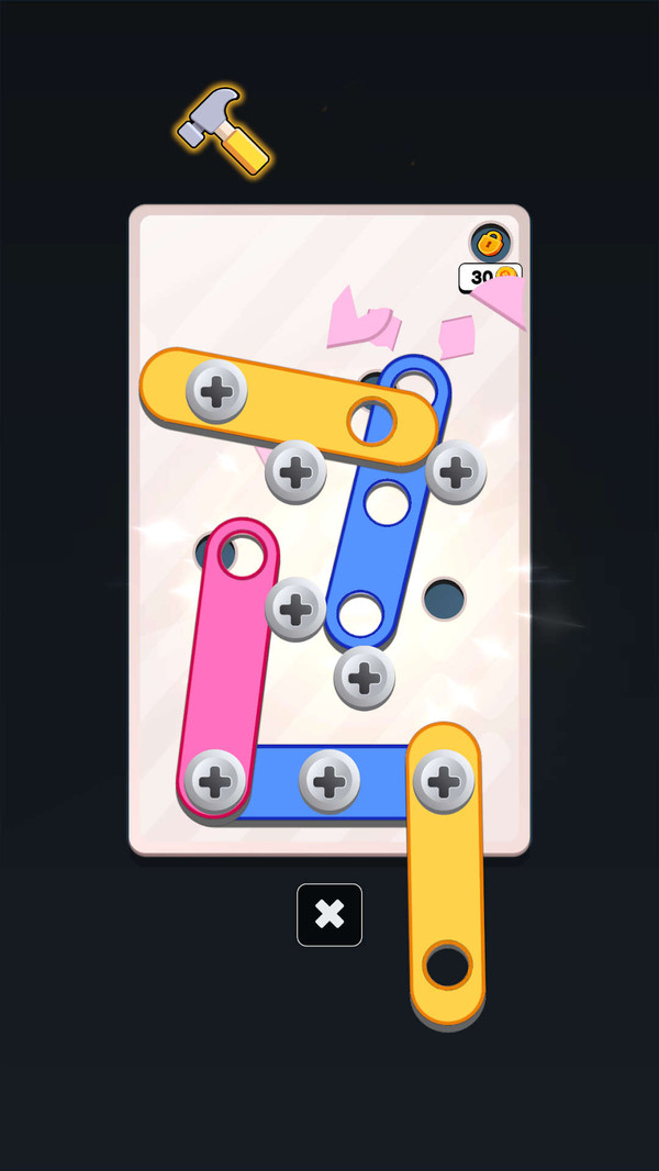 2、趣味十足的关卡设计,每关螺丝布局巧妙,考验逻辑思维与动手能力;