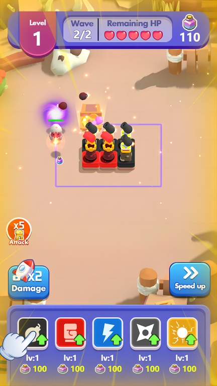 3、玩家需要在游戏内不断的升级自己的防御武器来抵挡敌人的进攻。