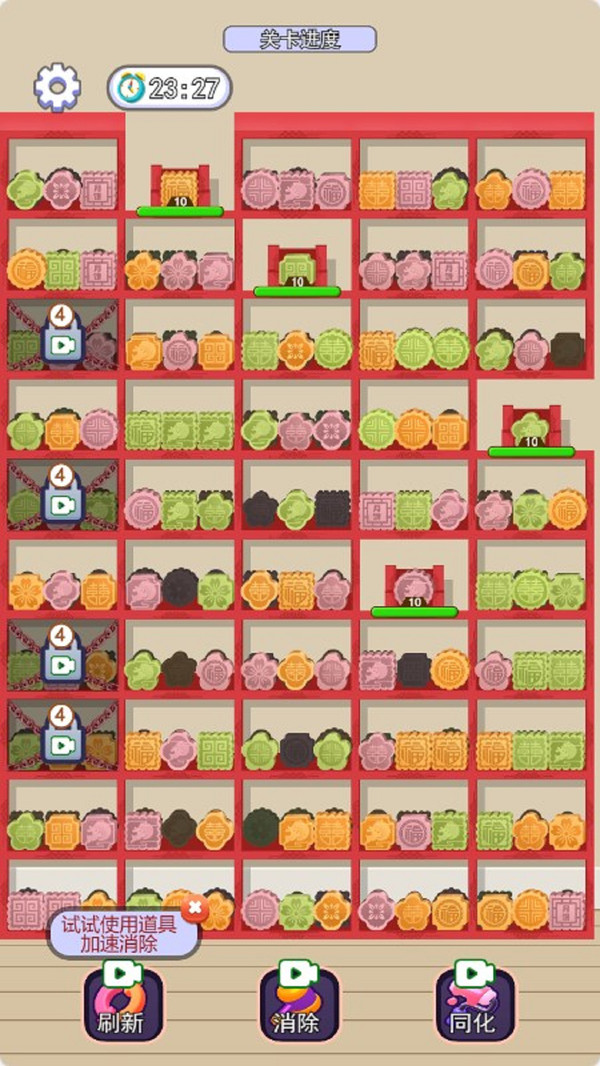 1、月饼消除乐趣多多,琳琅满目的货架,你需要仔细的观察;
