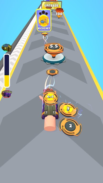 1、在这里玩家们能够挑战不一样的跑酷游戏体验,玩家们能够发射自己的陀螺进行闯关。