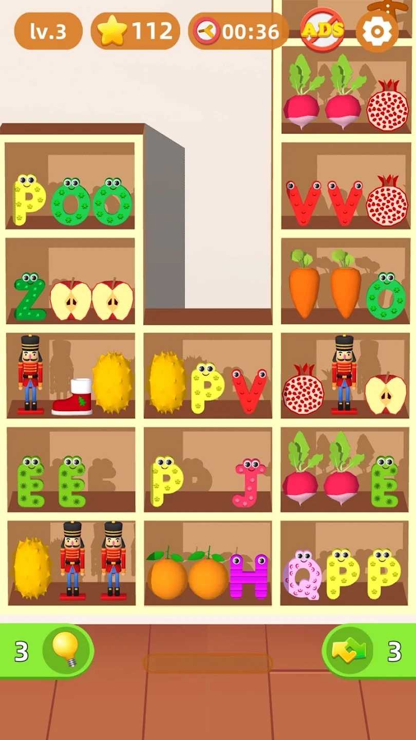 3.将相同的物品分类放入随机壁橱,每一关都有多种不同的通关方式。