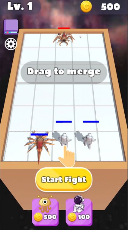 2、滑动双指,在棋盘格地图上合并相同怪物来对此升级,让自己变得更强大。