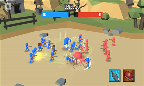 2、游戏起初只有三个小兵,但随着不断的战斗,获取更多的资源,你的队伍将会逐渐壮大起来。