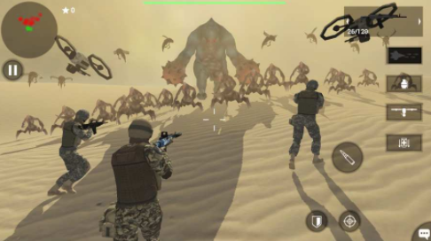1、游戏采用多种现代化的战争武器,在与怪物战斗时,可以使用防护盾、飞行器进行辅助攻击。