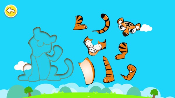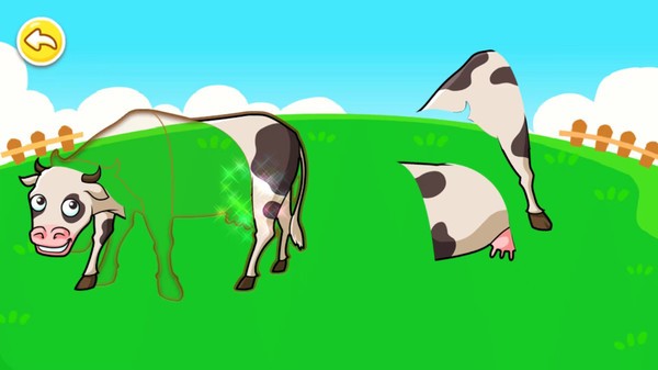 1、宝宝儿童动物拼图游戏通过简单的拖放拼图操作,帮助宝宝认识颜色、形状和动物;