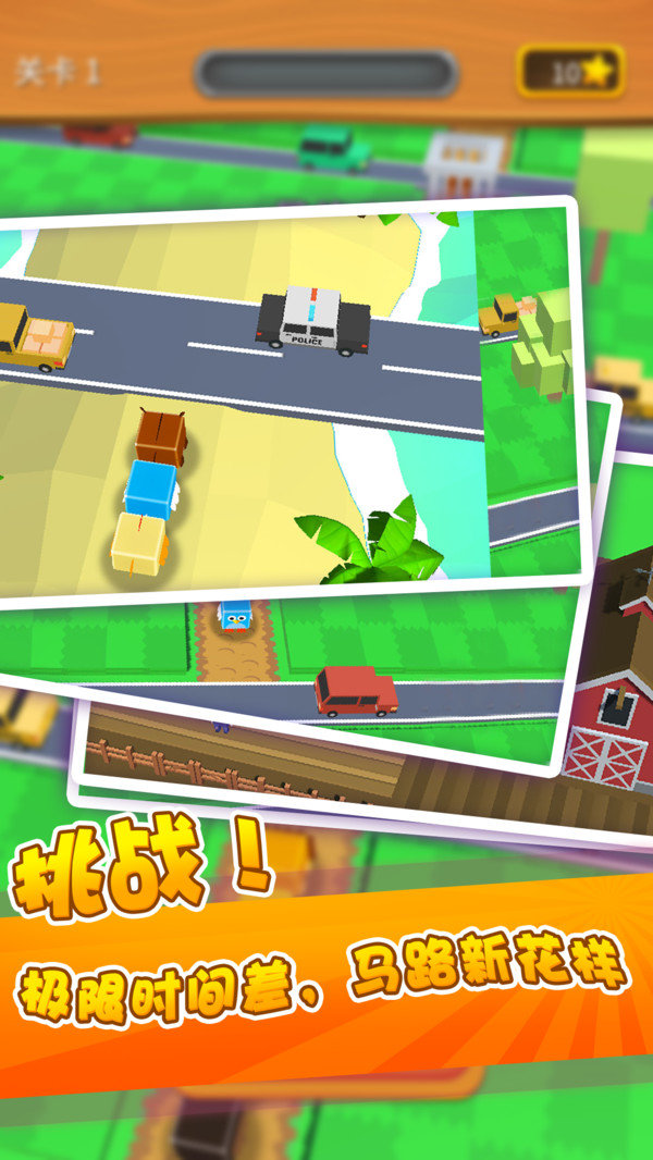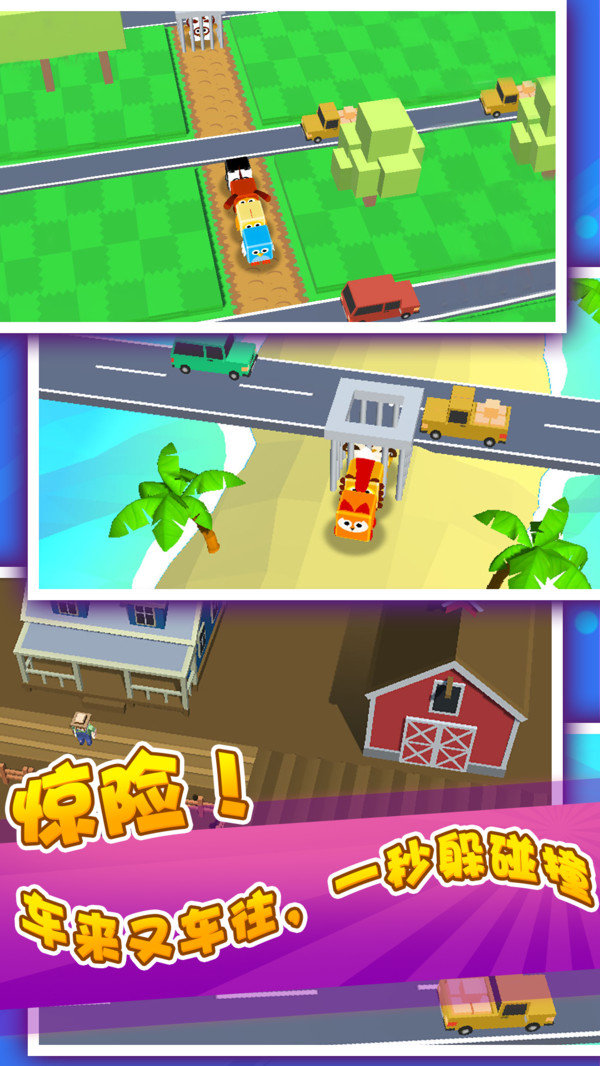 2、玩家需要控制各种可爱萌的动物从旧农场移动到新农场,躲避过往车辆并过马路。