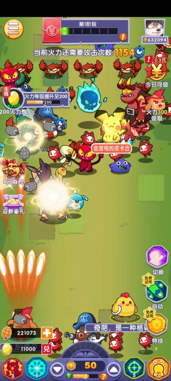 3、卡通的动物角色都有自己的专属技能,随机的组合成就多多。
