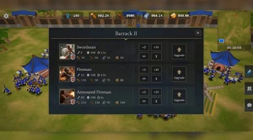 2、玩家可以不断升级自己的武器和设备,提高军队的攻击和防御能力;