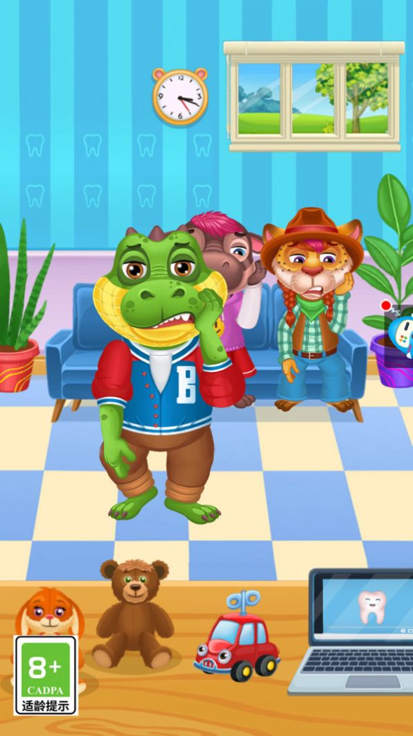 3、每个小动物都有各种不同的牙齿问题,你要帮助它们解决痛苦;