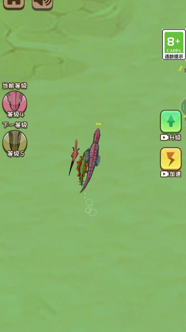 1、在地图中畅快的冲刺,控制着自己的角色,从小小动物开始成长;