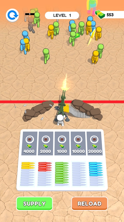1、你需要通过按不同颜色的子弹把它们分类,并把它们放在相应的炮台上,抵御敌人进攻;