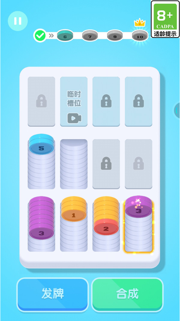 2、精细的画面与流畅的操控效果,利用逻辑将钱币有序排列,吸引众多玩家参与;