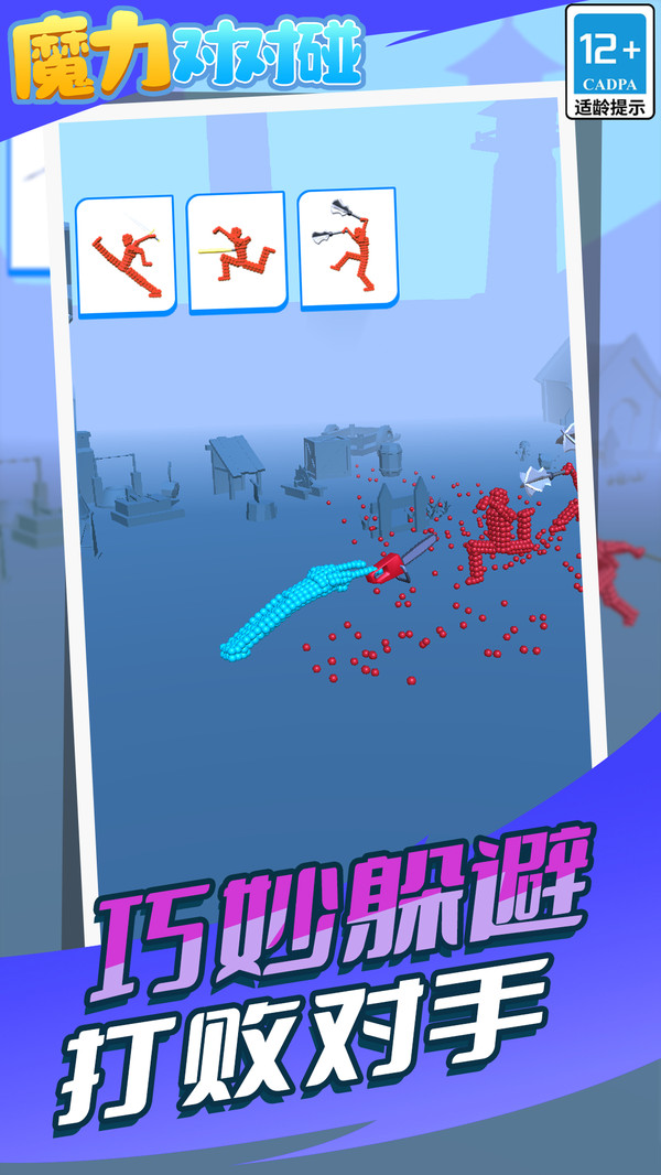 1、创意动作碰撞玩法,玩家操控角色施展技能,通过精准碰撞击败对手;