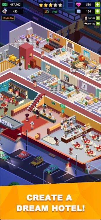 2、游戏中玩家可以自由地设计自己的酒店,扩大规模,提升酒店星级;